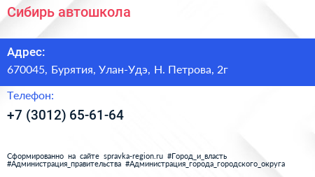 Сибирь, автошкола по адресу 670045, Бурятия, Улан-Удэ, Н. Петрова, 2г в дальнейшем Организация, размещена в следующих категориях: