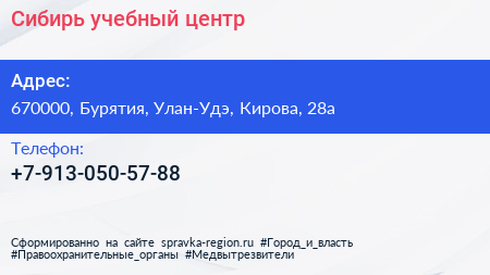 Сибирь, учебный центр по адресу 670000, Бурятия, Улан-Удэ, Кирова, 28а в дальнейшем Организация, размещена в следующих категориях: