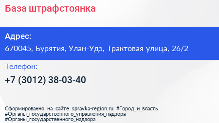База, штрафстоянка по адресу 670045, Бурятия, Улан-Удэ, Трактовая улица, 26/2 в дальнейшем Организация, размещена в следующих категориях: