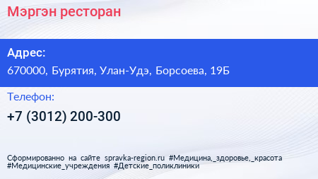 Мэргэн, ресторан по адресу 670000, Бурятия, Улан-Удэ, Борсоева, 19Б в дальнейшем Организация, размещена в следующих категориях:
