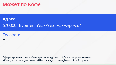 Может по Кофе по адресу 670000, Бурятия, Улан-Удэ, Ранжурова, 1 в дальнейшем Организация, размещена в следующих категориях: