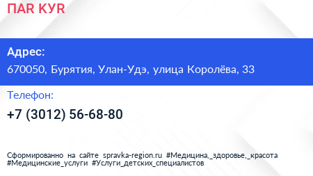 ПАR & KУR по адресу 670050, Бурятия, Улан-Удэ, улица Королёва, 33 в дальнейшем Организация, размещена в следующих категориях: