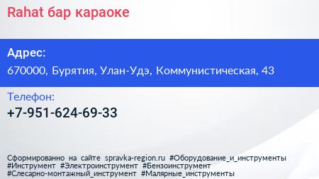 Rahat, бар-караоке по адресу 670000, Бурятия, Улан-Удэ, Коммунистическая, 43 в дальнейшем Организация, размещена в следующих категориях: