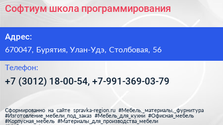 Софтиум, школа программирования по адресу 670047, Бурятия, Улан-Удэ, Столбовая, 56 в дальнейшем Организация, размещена в следующих категориях: