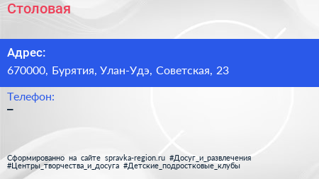 Столовая по адресу 670000, Бурятия, Улан-Удэ, Советская, 23 в дальнейшем Организация, размещена в следующих категориях: