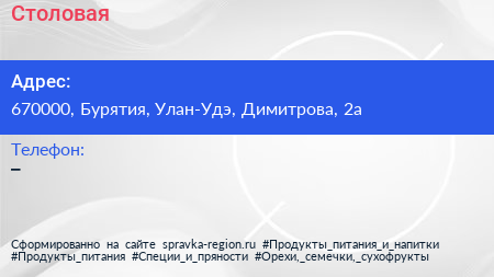 Столовая по адресу 670000, Бурятия, Улан-Удэ, Димитрова, 2а в дальнейшем Организация, размещена в следующих категориях: