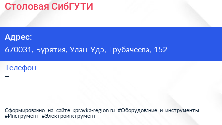 Столовая, СибГУТИ по адресу 670031, Бурятия, Улан-Удэ, Трубачеева, 152 в дальнейшем Организация, размещена в следующих категориях:
