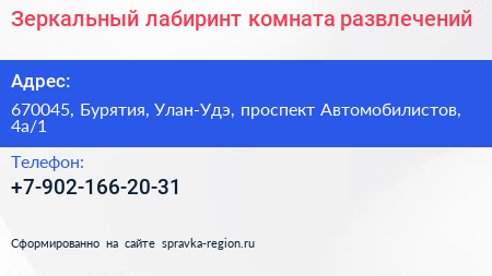 Зеркальный лабиринт, комната развлечений по адресу 670045, Бурятия, Улан-Удэ, проспект Автомобилистов, 4а/1 в дальнейшем Организация, размещена в следующих категориях: