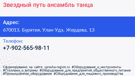 Звездный путь, ансамбль танца по адресу 670013, Бурятия, Улан-Удэ, Жердева, 13 в дальнейшем Организация, размещена в следующих категориях: