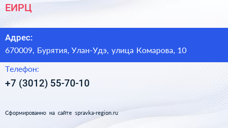 ЕИРЦ по адресу 670009, Бурятия, Улан-Удэ, улица Комарова, 10 в дальнейшем Организация, размещена в следующих категориях: