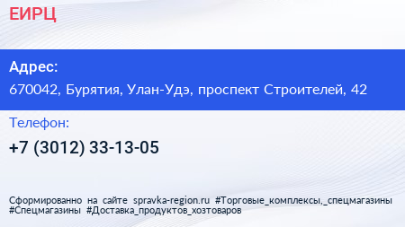 ЕИРЦ по адресу 670042, Бурятия, Улан-Удэ, проспект Строителей, 42 в дальнейшем Организация, размещена в следующих категориях: