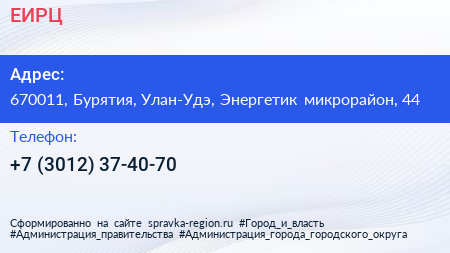 ЕИРЦ по адресу 670011, Бурятия, Улан-Удэ, Энергетик микрорайон, 44 в дальнейшем Организация, размещена в следующих категориях: