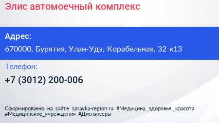 Элис, автомоечный комплекс по адресу 670000, Бурятия, Улан-Удэ, Корабельная, 32 к13 в дальнейшем Организация, размещена в следующих категориях:
