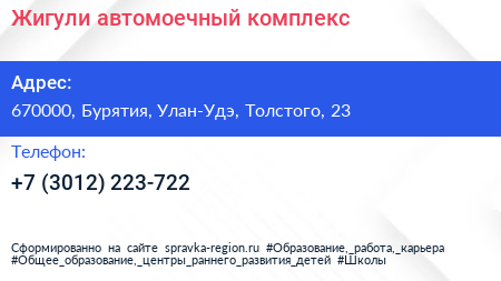 Жигули, автомоечный комплекс по адресу 670000, Бурятия, Улан-Удэ, Толстого, 23 в дальнейшем Организация, размещена в следующих категориях: