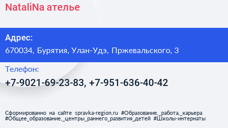 NataliNa, ателье по адресу 670034, Бурятия, Улан-Удэ, Пржевальского, 3 в дальнейшем Организация, размещена в следующих категориях: