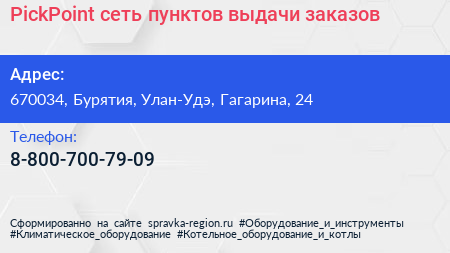 PickPoint, сеть пунктов выдачи заказов по адресу 670034, Бурятия, Улан-Удэ, Гагарина, 24 в дальнейшем Организация, размещена в следующих категориях: