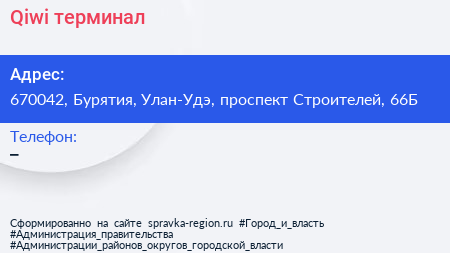 Qiwi, терминал по адресу 670042, Бурятия, Улан-Удэ, проспект Строителей, 66Б в дальнейшем Организация, размещена в следующих категориях: