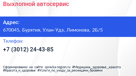 Выхлопной, автосервис по адресу 670045, Бурятия, Улан-Удэ, Лимонова, 2Б/5 в дальнейшем Организация, размещена в следующих категориях: