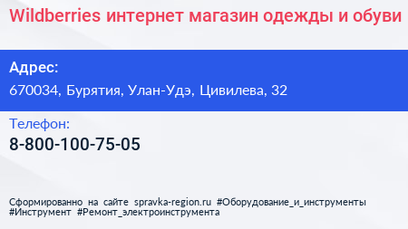 Wildberries, интернет-магазин одежды и обуви по адресу 670034, Бурятия, Улан-Удэ, Цивилева, 32 в дальнейшем Организация, размещена в следующих категориях: