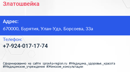 Златошвейка по адресу 670000, Бурятия, Улан-Удэ, Борсоева, 33а в дальнейшем Организация, размещена в следующих категориях: