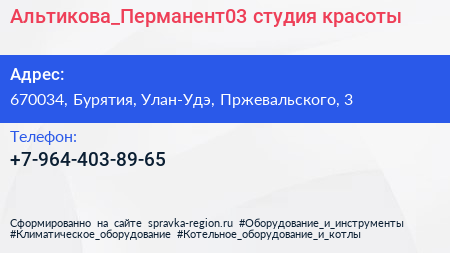 Альтикова_Перманент03, студия красоты по адресу 670034, Бурятия, Улан-Удэ, Пржевальского, 3 в дальнейшем Организация, размещена в следующих категориях: