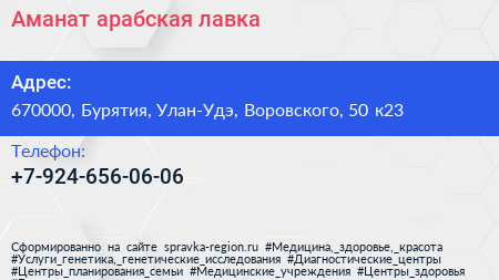 Аманат, арабская лавка по адресу 670000, Бурятия, Улан-Удэ, Воровского, 50 к23 в дальнейшем Организация, размещена в следующих категориях: