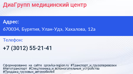 ДиаГрупп, медицинский центр по адресу 670034, Бурятия, Улан-Удэ, Хахалова, 12а в дальнейшем Организация, размещена в следующих категориях: