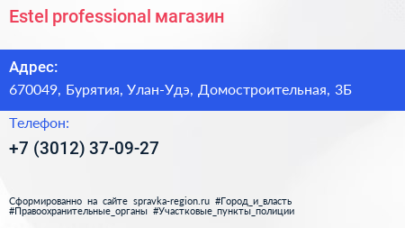 Estel professional, магазин по адресу 670049, Бурятия, Улан-Удэ, Домостроительная, 3Б в дальнейшем Организация, размещена в следующих категориях: