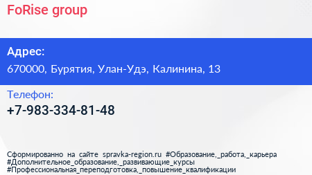 FoRise group по адресу 670000, Бурятия, Улан-Удэ, Калинина, 13 в дальнейшем Организация, размещена в следующих категориях: