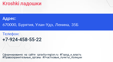 Kroshki-ладошки по адресу 670000, Бурятия, Улан-Удэ, Ленина, 35Б в дальнейшем Организация, размещена в следующих категориях: