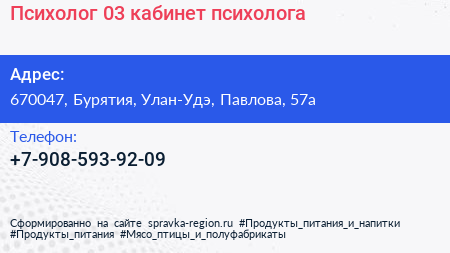 Психолог 03, кабинет психолога по адресу 670047, Бурятия, Улан-Удэ, Павлова, 57а в дальнейшем Организация, размещена в следующих категориях: