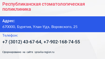 Республиканская стоматологическая поликлиника по адресу 670000, Бурятия, Улан-Удэ, Воровского, 25 в дальнейшем Организация, размещена в следующих категориях: