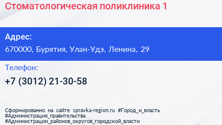 Стоматологическая поликлиника №1 по адресу 670000, Бурятия, Улан-Удэ, Ленина, 29 в дальнейшем Организация, размещена в следующих категориях: