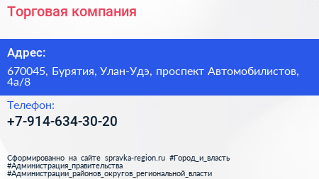 Торговая компания по адресу 670045, Бурятия, Улан-Удэ, проспект Автомобилистов, 4а/8 в дальнейшем Организация, размещена в следующих категориях: