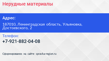 Нерудные материалы по адресу 187010, Ленинградская область, Ульяновка, Достоевского, 2 в дальнейшем Организация, размещена в следующих категориях: