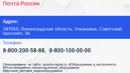Почта России по адресу 187010, Ленинградская область, Ульяновка, Советский проспект, 36 в дальнейшем Организация, размещена в следующих категориях: