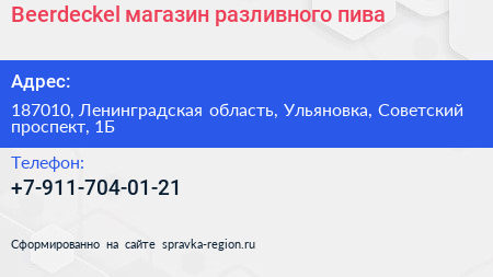 Beerdeckel, магазин разливного пива по адресу 187010, Ленинградская область, Ульяновка, Советский проспект, 1Б в дальнейшем Организация, размещена в следующих категориях: