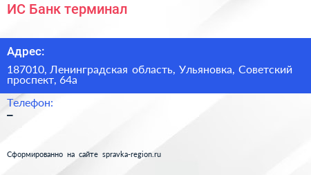 ИС Банк, терминал по адресу 187010, Ленинградская область, Ульяновка, Советский проспект, 64а в дальнейшем Организация, размещена в следующих категориях: