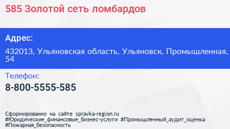 585*Золотой, сеть ломбардов по адресу 432013, Ульяновская область, Ульяновск, Промышленная, 54 в дальнейшем Организация, размещена в следующих категориях: