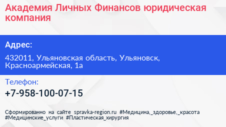 Академия Личных Финансов, юридическая компания по адресу 432011, Ульяновская область, Ульяновск, Красноармейская, 1а в дальнейшем Организация, размещена в следующих категориях:
