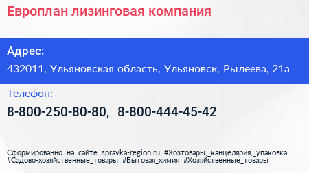 Европлан, лизинговая компания по адресу 432011, Ульяновская область, Ульяновск, Рылеева, 21а в дальнейшем Организация, размещена в следующих категориях: