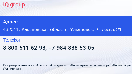 IQ group по адресу 432011, Ульяновская область, Ульяновск, Рылеева, 21 в дальнейшем Организация, размещена в следующих категориях: