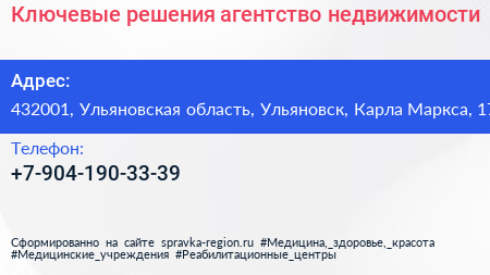 Ключевые решения, агентство недвижимости по адресу 432001, Ульяновская область, Ульяновск, Карла Маркса, 17 в дальнейшем Организация, размещена в следующих категориях: