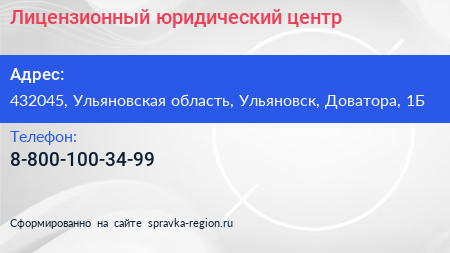 Лицензионный юридический центр по адресу 432045, Ульяновская область, Ульяновск, Доватора, 1Б в дальнейшем Организация, размещена в следующих категориях: