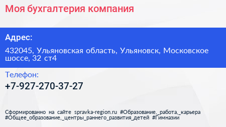Моя бухгалтерия, компания по адресу 432045, Ульяновская область, Ульяновск, Московское шоссе, 32 ст4 в дальнейшем Организация, размещена в следующих категориях: