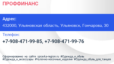 ПРОФФИНАНС по адресу 432000, Ульяновская область, Ульяновск, Гончарова, 30 в дальнейшем Организация, размещена в следующих категориях: