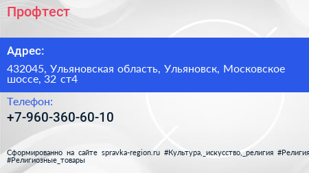 Профтест по адресу 432045, Ульяновская область, Ульяновск, Московское шоссе, 32 ст4 в дальнейшем Организация, размещена в следующих категориях:
