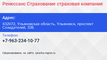 Ренессанс Страхование, страховая компания по адресу 432072, Ульяновская область, Ульяновск, проспект Созидателей, 33Б в дальнейшем Организация, размещена в следующих категориях: