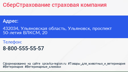 СберСтрахование, страховая компания по адресу 432034, Ульяновская область, Ульяновск, проспект 50-летия ВЛКСМ, 20 в дальнейшем Организация, размещена в следующих категориях: