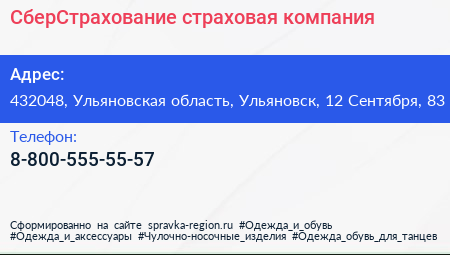 СберСтрахование, страховая компания по адресу 432048, Ульяновская область, Ульяновск, 12 Сентября, 83 в дальнейшем Организация, размещена в следующих категориях: